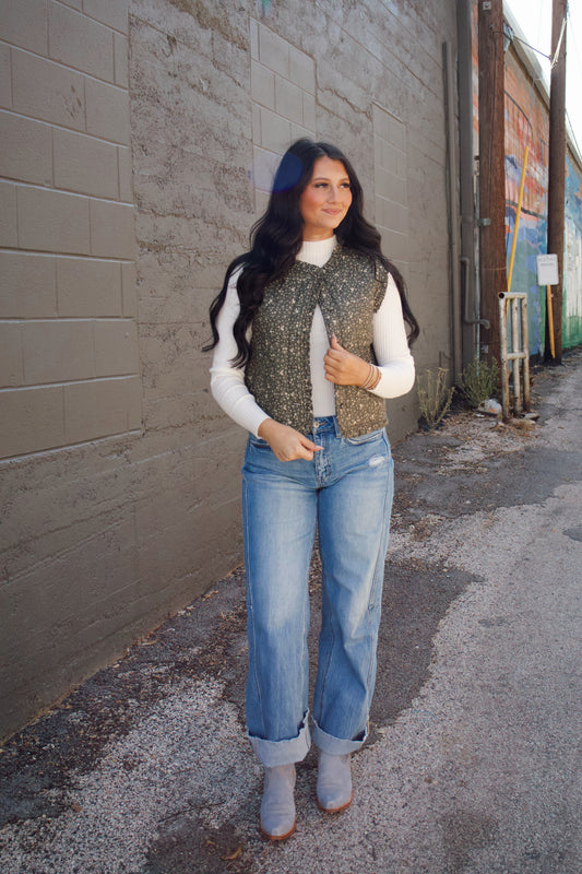 Check & Daisy Print Ruffle Vest