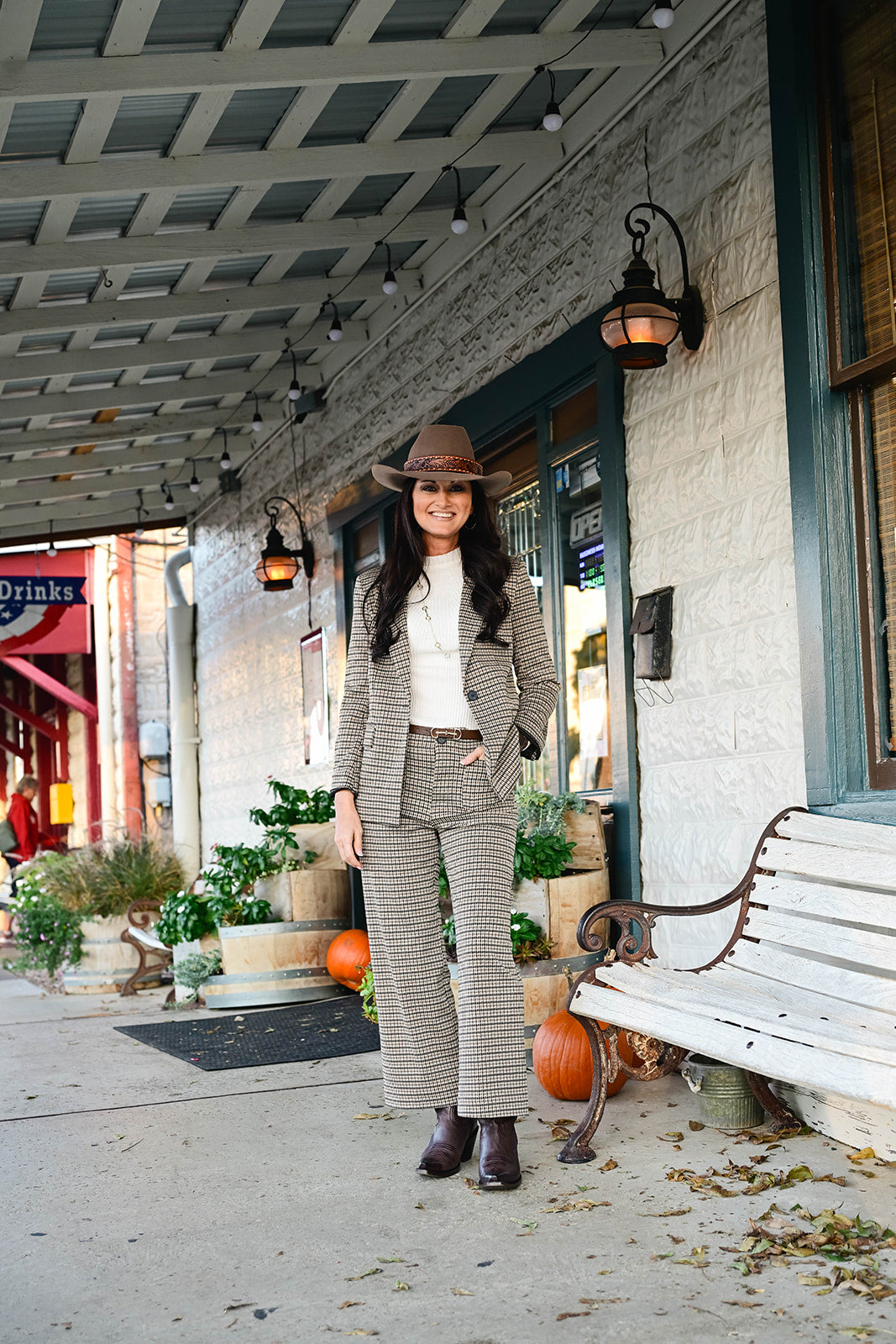 This Houndstooth Blazer set is a versatile choice for any fashion-forward woman. Made from high-quality polyester, the blazer and cropped pants are perfect for both western and business looks. Expand your wardrobe options and elevate your style with this must-have set.