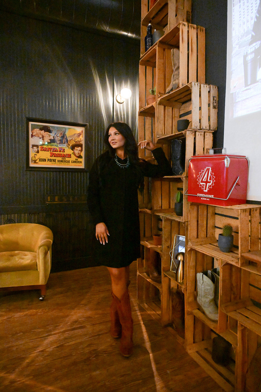 The Suede Western Shirt Dress is crafted from supple suede that brings a refined edge to a classic western silhouette. It features an oversized notch collar, a full snap front with a hidden placket, and a deep single-point back yoke. Patch pockets with flaps add functional detail, while a self-tie belt flatters the waist. Finished with single-snap cuffs, it’s a statement-making piece with timeless western character.